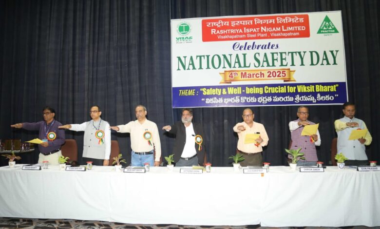 RINL, the corporate entity of Visakhapatnam Steel Plant observed the 54th National Safety Day at the Multi-purpose hall of Ukku club of Visakhapatnam Steel Plant- RINL, today. The theme of 54th National Safety Day celebration was “Safety and Well-Being Are Crucial for Vikasit Bharat”