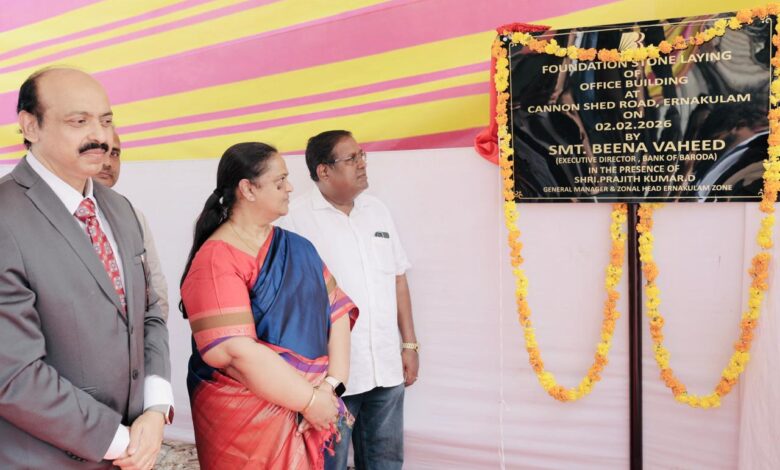 Bank of Baroda, India’s International Bank, marked a significant milestone in strengthening its infrastructure in Kerala with the foundation stone laying ceremony of its new Zonal Office building at Canon Shed Road, Ernakulam. The foundation stone was laid by Beena Vaheed, Executive Director, Bank of Baroda.