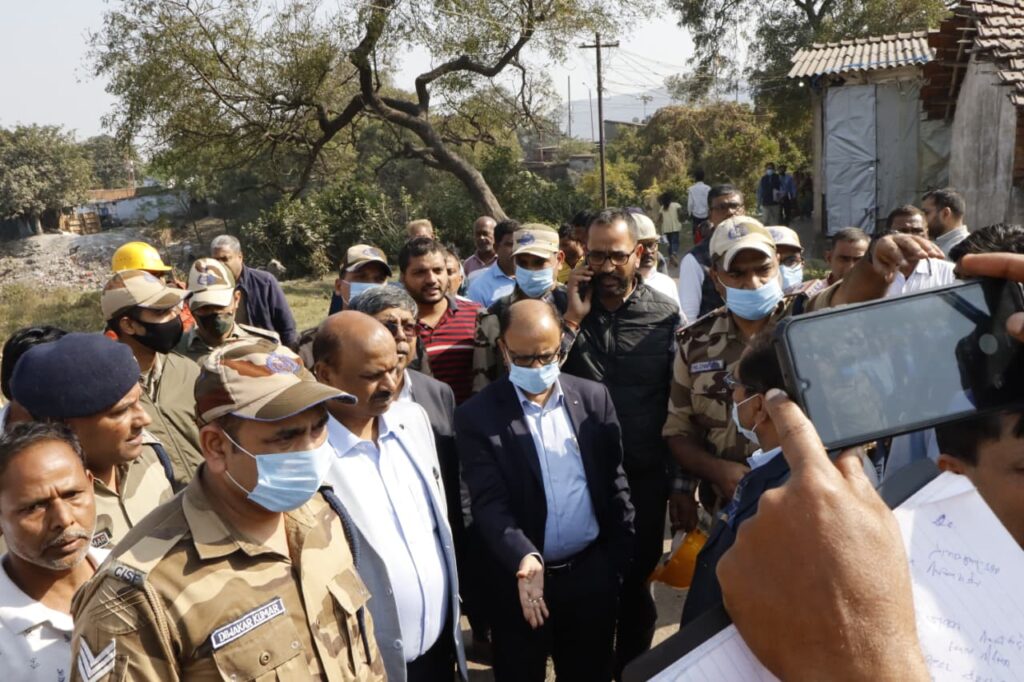 BCCL CMD, Manoj Kumar Agarwal, visited the gas-affected areas of Rajput Basti today. He was accompanied by Director (M&S) Shri M.K. Ramaiya, Director (Technical) P&P Shri Niladri Roy, and other officials from the headquarters and the area.
