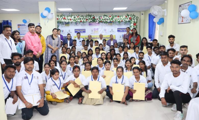 The ceremony celebrated the successful completion of training by students enrolled in IT-CCE (Customer Care Executive), Beautician, and Fitter (Leveling and Balancing) trades, aimed at empowering youth from project-affected areas.