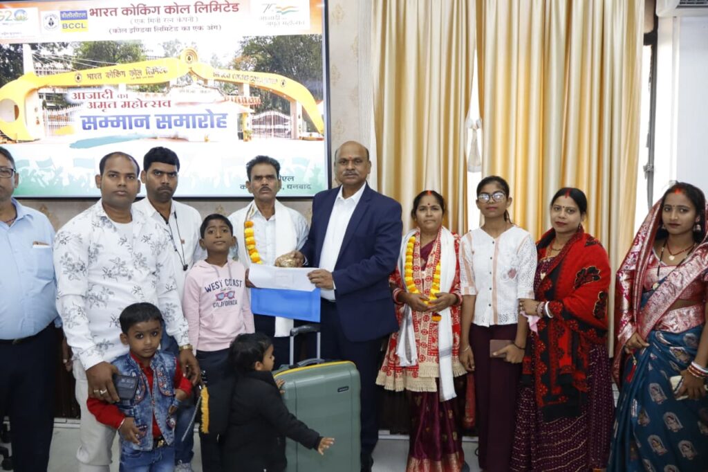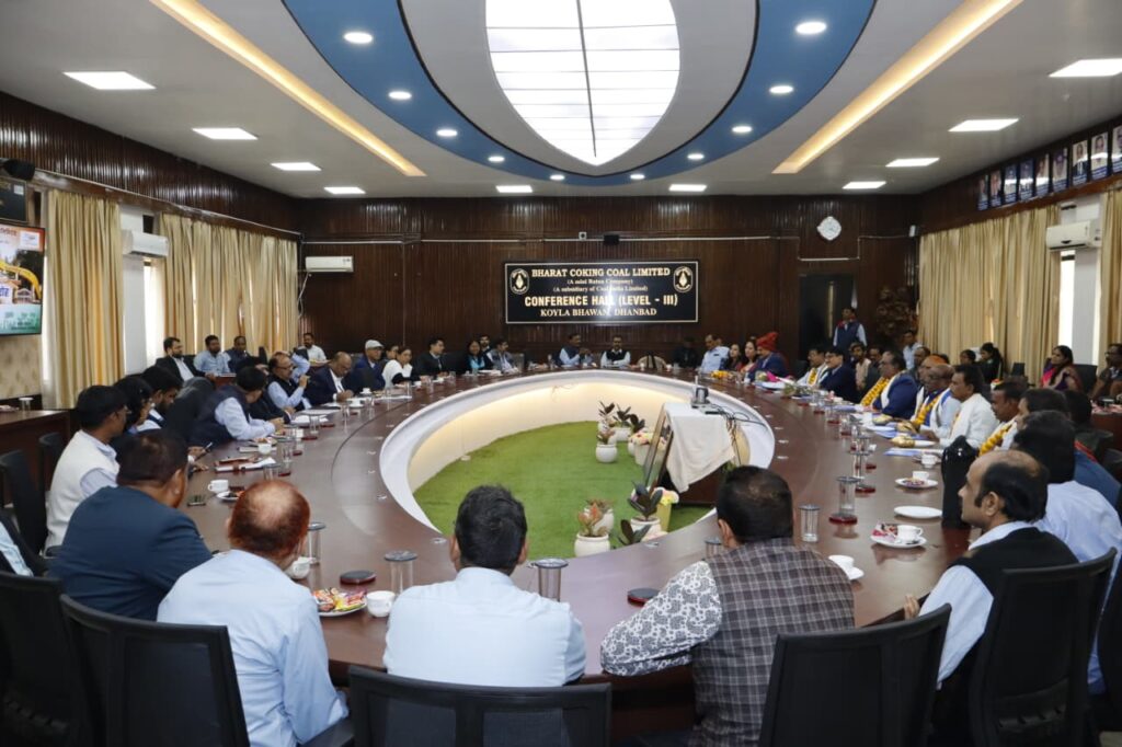 The event, organized in the conference room at Coal Bhawan, was presided over by BCCL Shri Manoj Kumar Agarwal. The ceremony witnessed the presence of Director (Human Resources) Murali Krishna Ramaiah, CMS Dr. Poonam Dubey, and senior officials including General Manager (HR) Kumar Manoj, GM (Manpower Planning) Apurva Kumar Mitra, GM (Administration) Arpan Ghosh, HOD (Officer Establishment) Shobha J. Kujur, HOD (Welfare) Kiran Rani Nayak, representatives of various labour organisations, senior officers, staff members, and a large gathering of family members of the retiring personnel.