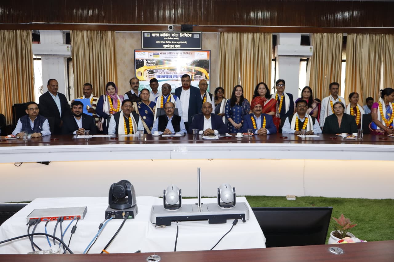 The event, organized in the conference room at Coal Bhawan, was presided over by BCCL Shri Manoj Kumar Agarwal. The ceremony witnessed the presence of Director (Human Resources) Murali Krishna Ramaiah, CMS Dr. Poonam Dubey, and senior officials including General Manager (HR) Kumar Manoj, GM (Manpower Planning) Apurva Kumar Mitra, GM (Administration) Arpan Ghosh, HOD (Officer Establishment) Shobha J. Kujur, HOD (Welfare) Kiran Rani Nayak, representatives of various labour organisations, senior officers, staff members, and a large gathering of family members of the retiring personnel.