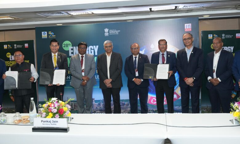 At the 28th Energy Technology Meet 2025 in Hyderabad, Bharat Petroleum Corporation Limited (BPCL) signed three landmark Memoranda of Understanding (MoUs) with Oil India Limited (OIL), Numaligarh Refinery Limited (NRL), and Fertilisers & Chemicals Travancore Limited (FACT), in the august presence of Shri Pankaj Jain, Secretary, Ministry of Petroleum and Natural Gas (MoPNG).