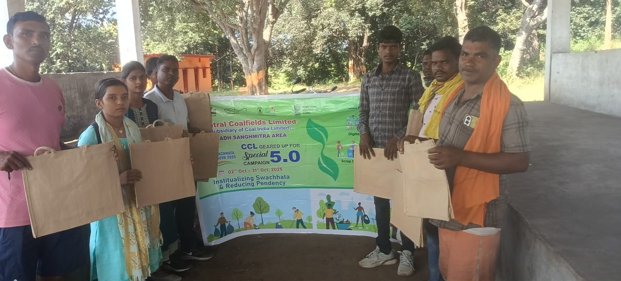 Central Coalfields Limited (CCL), a subsidiary of Coal India Limited, has launched an impactful environmental campaign under Special Campaign 5.0 in its Magadh-Sanghamitra region. As part of the initiative, jute bags were distributed at the local market in Fulbasiya village to spread awareness about the harmful effects of single-use plastic and to promote the use of eco-friendly alternatives.