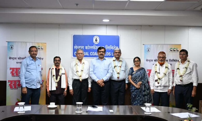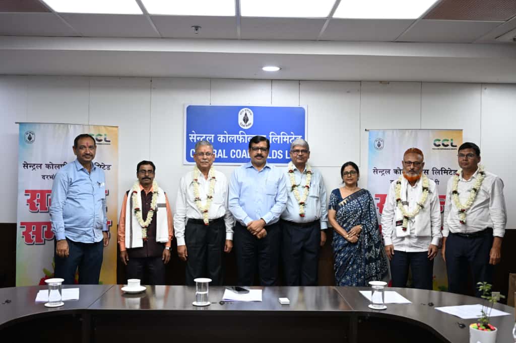 Central Coalfields Limited (CCL) organized a grand “Samman Samaroh” at its headquarters today to bid farewell to employees who retired in September 2025. A total of 82 employees were given a dignified and emotional send-off, including six from the CCL headquarters and others from various regional offices.