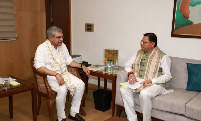 Chief Minister Pushkar Singh Dhami met Union Railway Minister Ashwini Vaishnav in New Delhi on Wednesday and discussed the expansion and modernization of railway infrastructure in Uttarakhand.