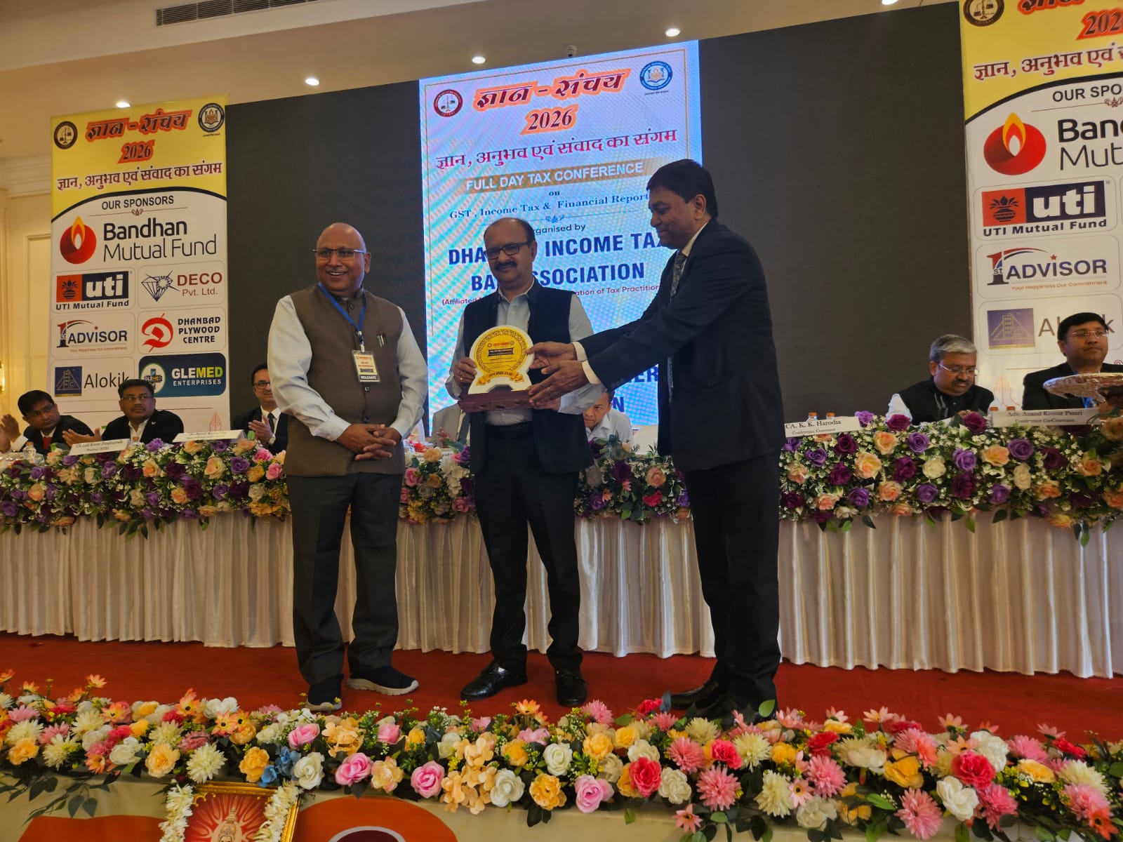 The conference was presided over by Tushar Kanti Satpathy, Chairman of the GST Appellate Authority. The event was attended by several distinguished dignitaries including Rajesh Kumar Jha, Chief Commissioner of Income Tax, Ranchi, and Sanjeev Kashyap, Principal Commissioner of Income Tax, Dhanbad, along with tax experts, professionals, and representatives from various organisations.
