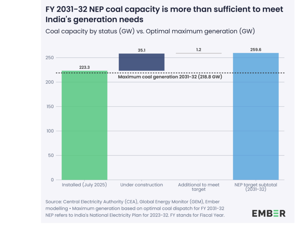 India does not need to add any more coal-based power capacity beyond what is already planned under the National Electricity Plan (NEP) 2032, neither for reliability nor for meeting peak demand, finds a new report titled “Coal’s Diminishing Role in India’s Electricity Transition” by energy think tank Ember.