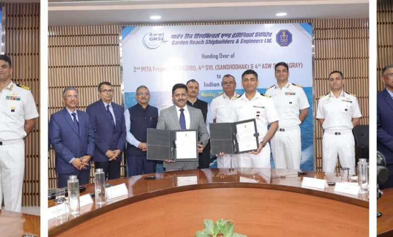 The simultaneous delivery of three complex naval platforms highlights GRSE’s:
