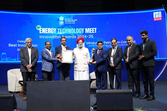 The award was presented by Hardeep Singh Puri, Minister of Petroleum and Natural Gas, to the HPCL leadership team in recognition of the company’s outstanding contribution to innovation and technological advancement in the oil and gas sector.