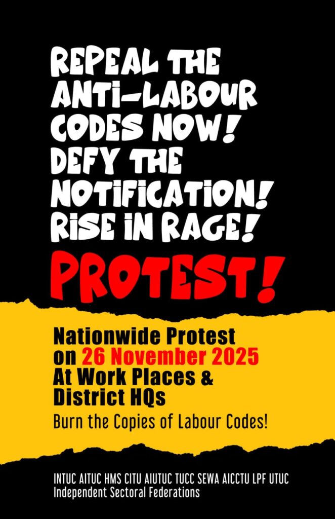 They have jointly called for a Nationwide Protest on November 26, 2025, demanding the scrapping of the four Labour Codes and immediate convening of the Indian Labour Conference (ILC).
