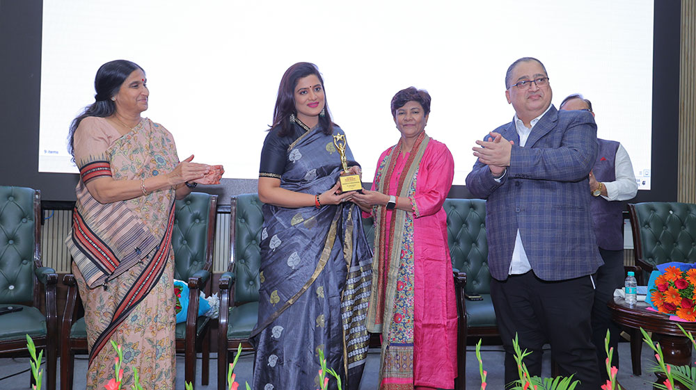 Ms. Neha Batham from Aaj Tak was felicitated for Excellence in TV News Anchoring.