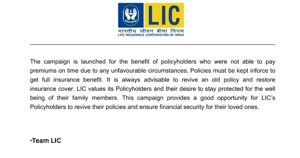 The LIC has emphasised that reviving lapsed policies ensures continuity of insurance cover and enables policyholders to avail full benefits, including risk cover, maturity benefits and bonuses as per the terms of the plan.