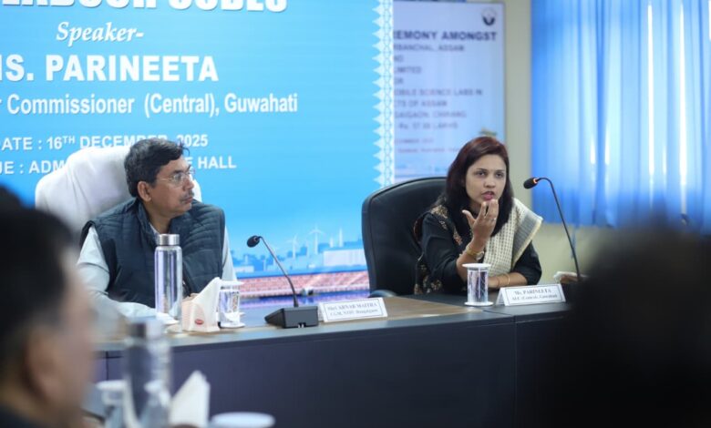The session was addressed by Ms. Parineeta, Assistant Labour Commissioner, Guwahati, who served as the resource person. She elaborated on the key provisions of the new labour codes and explained their implications for employers, contractors and workers. Emphasising fair labour practices, she highlighted the importance of statutory compliance, workplace safety, welfare measures and the collective responsibility of all stakeholders in ensuring a transparent and compliant work environment.