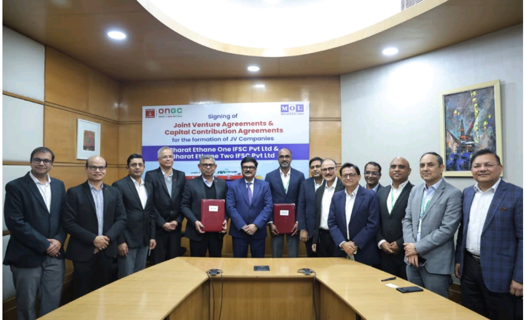 ONGC on Monday signed Joint Venture Agreements and Capital Contribution Agreements with MOL to acquire equity in two newly incorporated entities—Bharat Ethane One IFSC Private Limited and Bharat Ethane Two IFSC Private Limited—registered at GIFT City, Gandhinagar.
