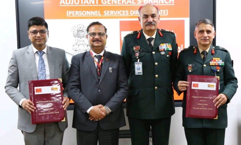 The agreement was formally signed by Sudhir Dalal, Chief General Manager, PNB, and Major General V.K. Purohit, AVSM, YSM, SM, Additional Director General Personal Services.