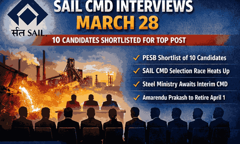 Interviews for the post of Chairman and Managing Director (CMD) of Steel Authority of India Limited (SAIL) are likely to be held on March 28, with the Public Enterprises Selection Board (PESB) shortlisting 10 candidates for the prestigious top position.