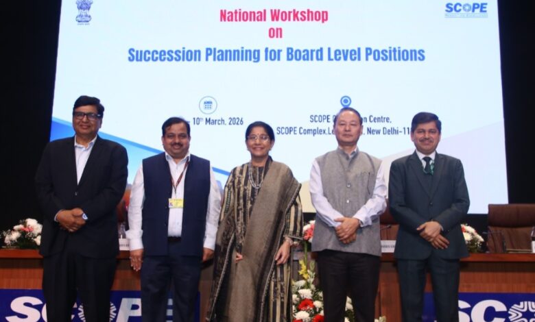 The Standing Conference of Public Enterprises (SCOPE) organized a National Workshop on Succession Planning for Board-Level Positions, bringing together senior leadership from across Public Sector Enterprises (PSEs) to deliberate on strengthening leadership pipelines in the public sector.