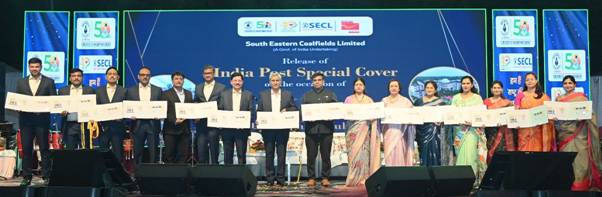 South Eastern Coalfields Limited (SECL), a leading subsidiary of Coal India Limited (CIL), unveiled an India Post “Special Cover” to commemorate Coal India’s Golden Jubilee and SECL’s Ruby Jubilee (40 years) of dedicated service to the nation’s energy sector. A Special Cancellation Cachet was also released on the occasion.